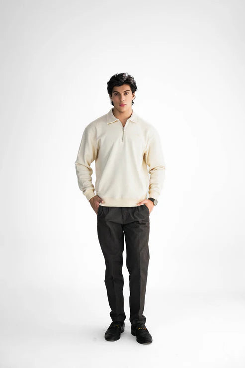 A timeless expression of refined ease, the Rib Knit Polo Sweater is crafted from 100% cotton knitted yarn for exceptional comfort and structure. The vertical rib pattern lends a clean, elongated silhouette, while the open collar design adds a relaxed sophistication — ideal for layering through fall and winter.