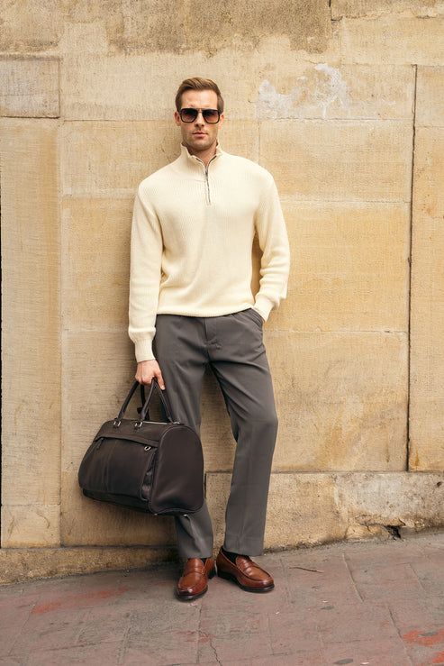 A refined essential for the modern wardrobe, the Quarter Zip Knit Sweater combines timeless style with effortless comfort. Crafted from 100% cotton knitted yarn, it offers a soft yet structured feel that’s ideal for the cooler months. The ribbed texture enhances warmth and durability, while the half-zip collar adds a touch of sophistication and versatility — wear it zipped for a polished look or open for relaxed ease.