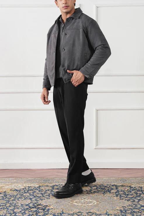 A refined take on the everyday layer, crafted in high-quality faux suede with a supple, velvety hand. The tailored-easy fit slips over winter knitwear with ease, delivering understated luxury and confident polish from weekday to weekend.