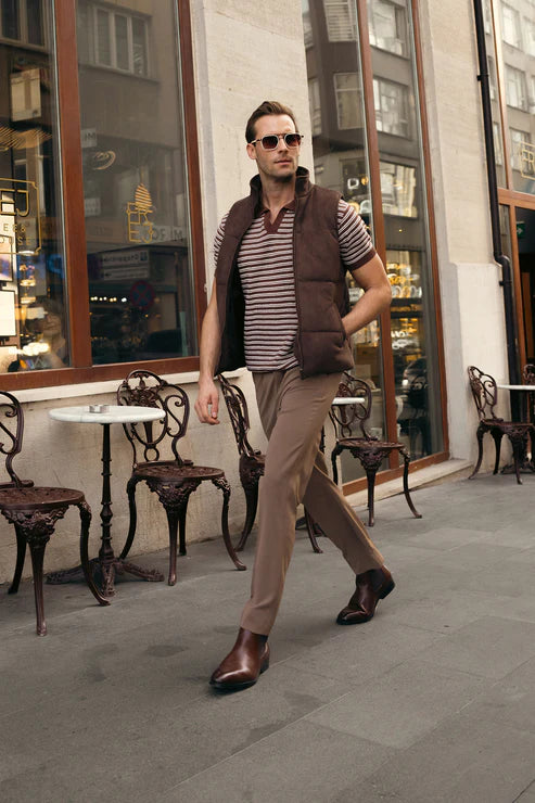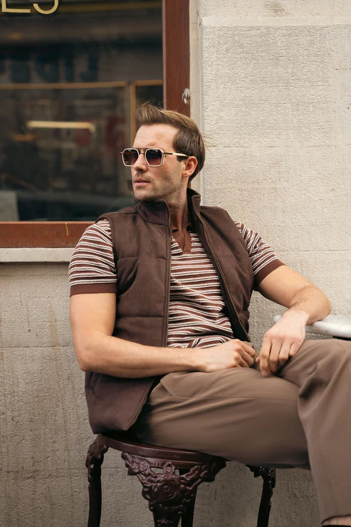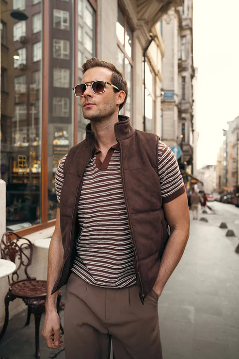 A timeless expression of refined ease, the Rib Knit Polo Sweater is crafted from 100% cotton knitted yarn for exceptional comfort and structure. The vertical rib pattern lends a clean, elongated silhouette, while the open collar design adds a relaxed sophistication — ideal for layering through fall and winter.