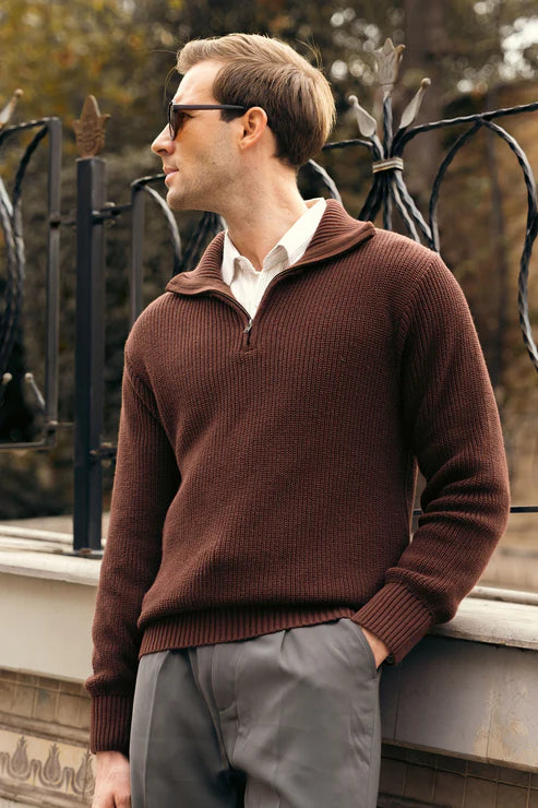 A refined essential for the modern wardrobe, the Quarter Zip Knit Sweater combines timeless style with effortless comfort. Crafted from 100% cotton knitted yarn, it offers a soft yet structured feel that’s ideal for the cooler months. The ribbed texture enhances warmth and durability, while the half-zip collar adds a touch of sophistication and versatility — wear it zipped for a polished look or open for relaxed ease.
